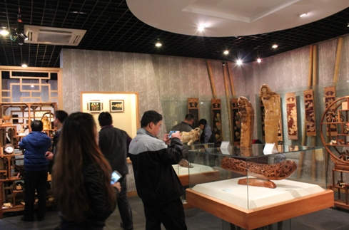 ??????? 跟隨著導(dǎo)游帶領(lǐng),【中國竹雕刻精品藝術(shù)館】便浮現(xiàn)在眼前、館內(nèi)珍藏了許多技藝精湛的竹雕刻藝術(shù)品。該館占地面積約3000平方米,共分為兩個(gè)展館——A館和B館,A館主要展示了竹子的發(fā)展進(jìn)程、中國竹刻雕藝術(shù)品及各類竹根雕、竹編手工藝等,B館為售賣區(qū),為我們提供了各類竹根雕工藝品、竹纖維制品和竹炭等,充分顯示了中國源遠(yuǎn)流長(zhǎng)的竹文化精髓。