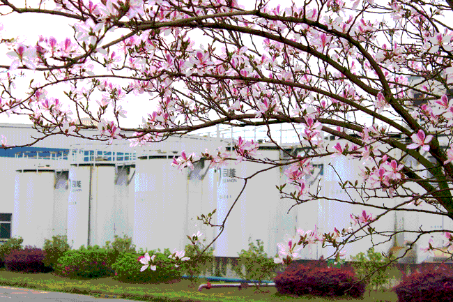 司能石油化工有限公司廠區(qū)內(nèi)的紫荊花一夜之間競(jìng)相怒放,真有一番“夜來(lái)風(fēng)雨聲,花‘開’知多少”的情趣!