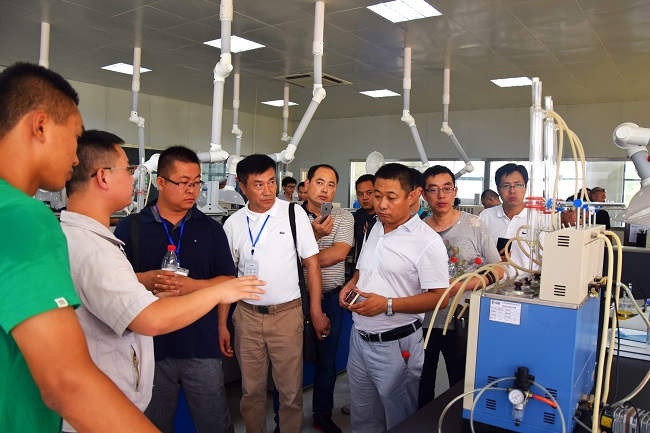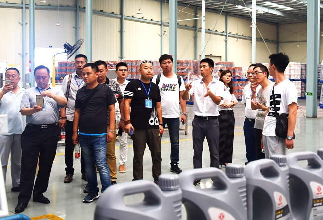通過司能雄厚實(shí)力的分享與演說,大家對(duì)司能充滿了無限好奇。19日早晨近180余人報(bào)名參觀溧陽工廠。當(dāng)天溧陽氣溫較高,但嘉賓們熱情向往不畏高溫頂著烈日來到工廠參觀考察、洽談交流。參觀嘉賓分成3個(gè)小組,依次參觀了研發(fā)中心、油樣儲(chǔ)存室、灌裝線、儲(chǔ)油區(qū),現(xiàn)代化自動(dòng)設(shè)施,參觀嘉賓紛紛掏出手機(jī)拍照留影,嘉賓被工廠先進(jìn)的自動(dòng)化生產(chǎn)線所吸引,充分展現(xiàn)了司能的雄厚實(shí)力和先進(jìn)技術(shù)水平。